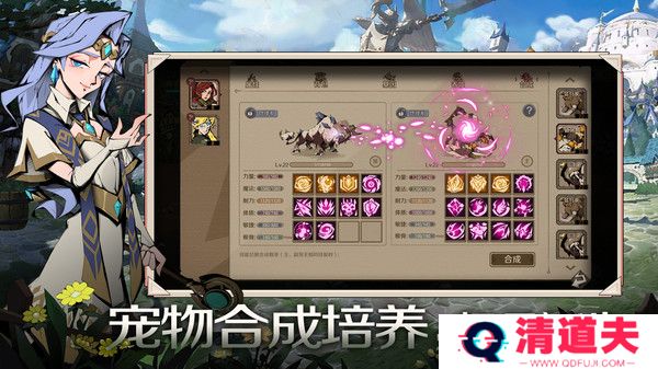 猎人:多样玩法,能召唤宠物并加成攻防,玩法丰富。