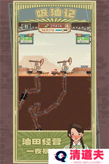 吸油记免广告版简介带领玩家梦回当年,沉浸激情燃烧的岁月,游戏内玩家需要带领着开采团队,勘探、采油、储存、售卖,一步步提升收益,凭借自己的能力,发展事业,逐渐成为村庄的领导者,带领大家奔向更好的生活!