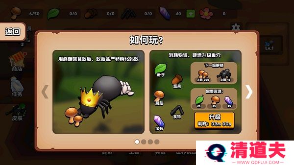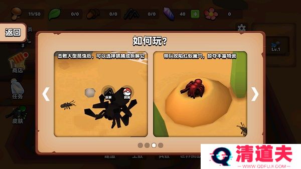 蚂蚁进化3d怎么升级火蚁技能:1、进入实验室