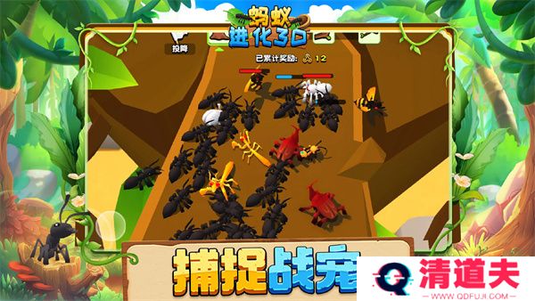 找到巨大昆虫后,与敌方蚂蚁展开战斗。过程中,注意上方的倒计时,确保在限定时间内完成战斗任务,以成功俘获目标昆虫。