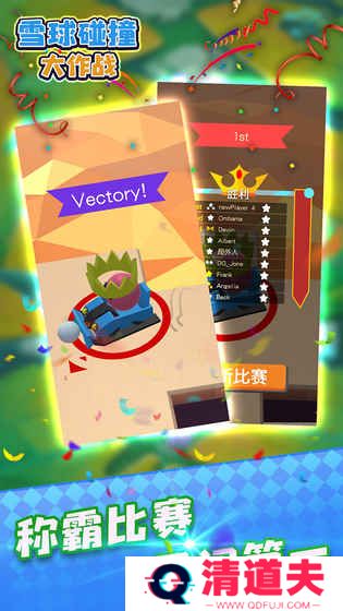 4. 胜利与失败:当场上只剩下最后一个雪球时,游戏结束,该玩家获得胜利。失败的玩家可以重新匹配,继续挑战。