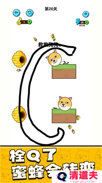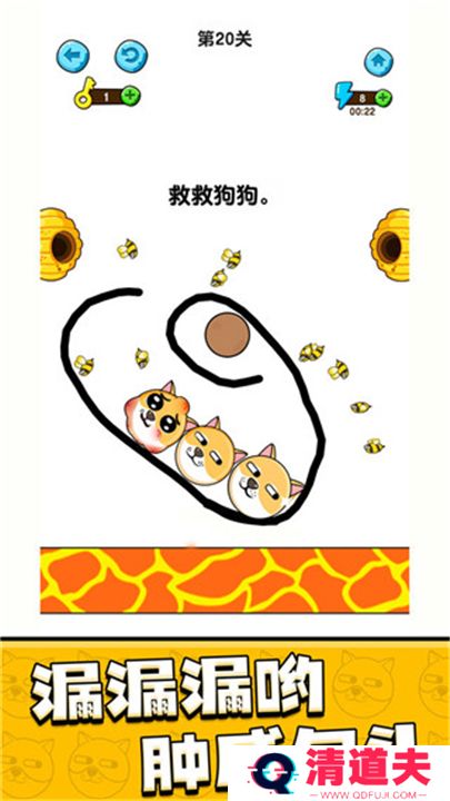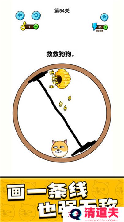 我的狗狗下载玩法:1、我的狗狗下载以独特的画线玩法为核心,玩家需要在限定时间内通过画线保护小狗免受蜜蜂的攻击,创造出多种可能的解谜方案。