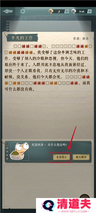 8、如果玩家猜不到关键词的时候,可以点击看看提示。