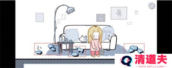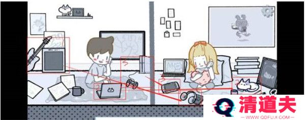 8、点两个人共同有的东西,包括两人的游戏机、吉他和耳机还有两只猫咪,除了3个物品外还有3个深层话题,需要连续滑动鼠标滚轮。