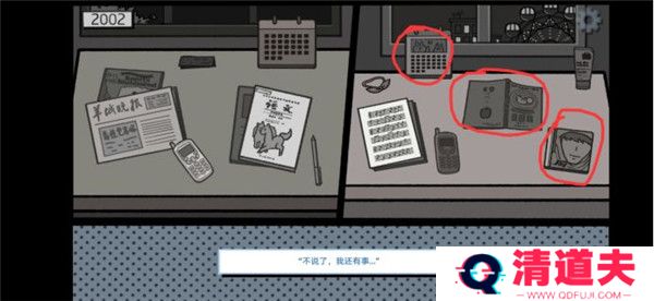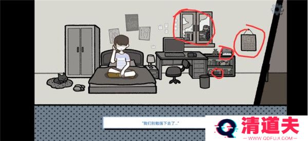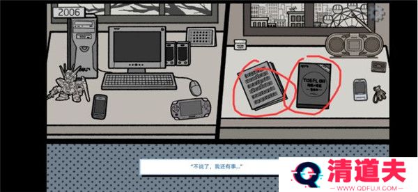 8、接下来点击桌面上的小物件过剧情,像“不说了,还有事…”这种话一次都不要点。