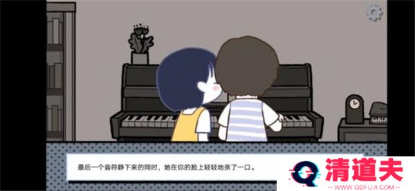 3、回家时也不要等女主直接走掉,然后点击天上的音符,再点点点对话框结局一就达成了老直男单相思白日梦的结局。