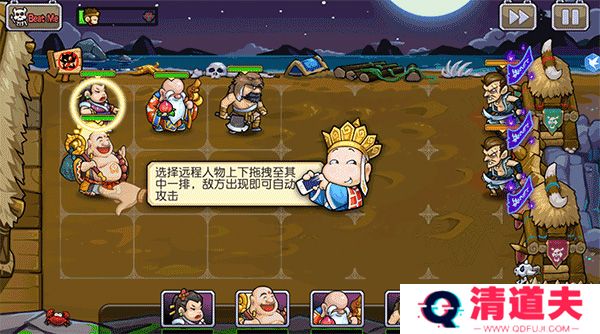 在关卡中选择出战阵容,并根据情况进行位置调换。战斗中技能会发亮,及时释放强力技能以扭转战局。