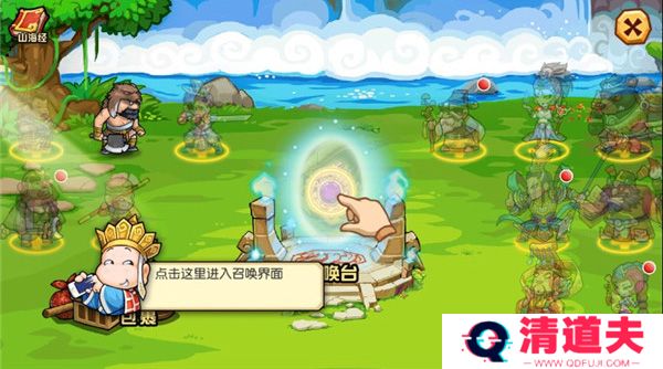 点击左下角的猴子或猪头,进入英雄界面。通过召唤台可以随机召唤新的英雄。