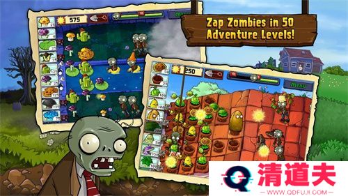 2、多达50个的冒险模式关卡设定,从白天到夜晚,从天台到游泳池,场景变化多样。