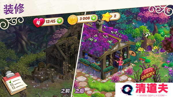 1、莉莉的花园是一款结合了益智消除与模拟经营玩法的手游。