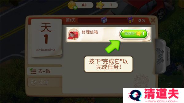 6、然后去到任务界面,这里点击完成它进行修理信箱。