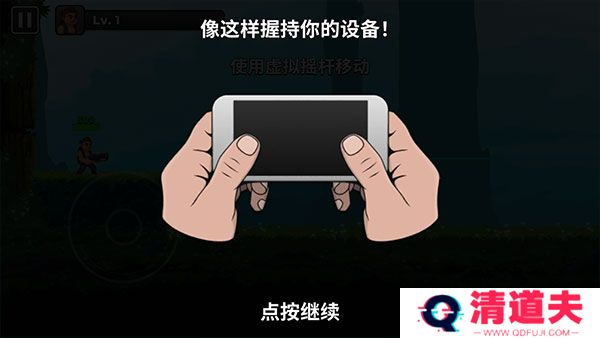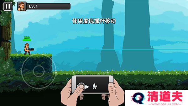 3、左上角可以暂停游戏,使用虚拟摇杆控制人物移动,前进。