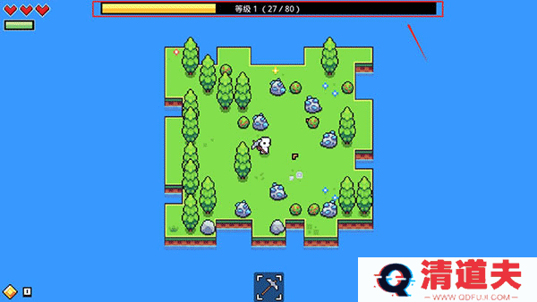 游戏界面正上方显示玩家当前的经验值与等级,最高等级为65级