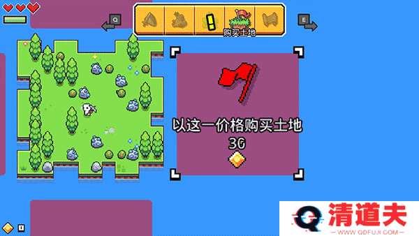 点击菜单栏中的“购买土地”按钮,可进入土地购买界面,你可以选择购买与已解锁岛屿相邻的岛屿