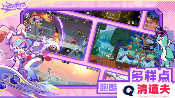 玩家将带领这些角色在不同的时空中穿梭,每个角色都拥有充沛的体力,能够持续进行跳跃、冲刺、滑行等跑酷动作,提供如同丝滑巧克力般的流畅体验。