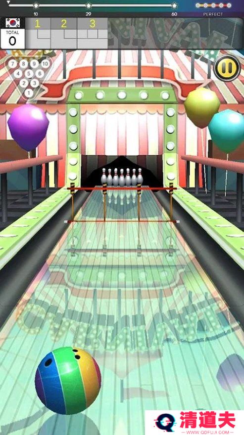 3. 击中保龄球瓶:玩家通过滑动屏幕来控制保龄球的投掷方向和力度,击中保龄球瓶后,根据击倒的数量获得相应的分数。