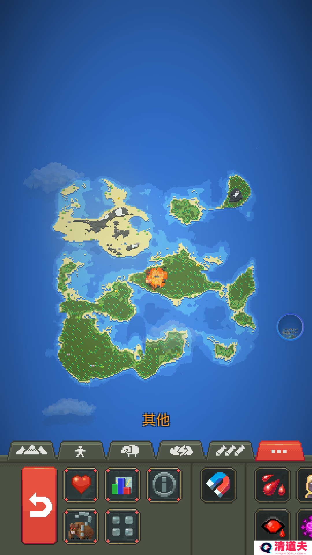 4. 模拟自然灾害:游戏提供了模拟自然灾害的功能,如陨石、火山、熔岩、龙卷风等,让玩家能够观察到这些灾害对世界的影响。