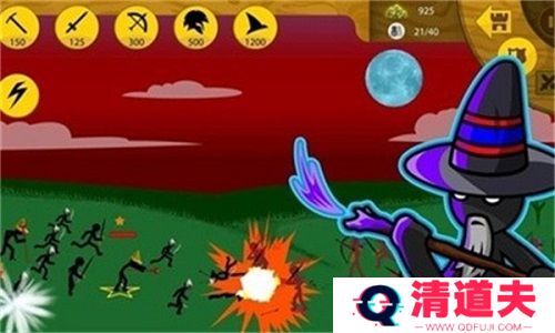3. 控制单位:玩家可以亲自控制每个火柴人,建造单位、开采黄金、学习剑术、长枪和长矛,训练弓箭手、巫师,甚至巨人。