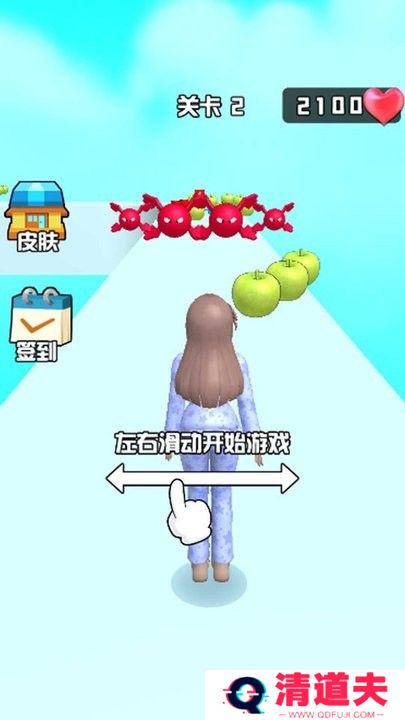 1. 角色控制:玩家通过滑动屏幕来控制女孩的移动方向,上滑跳跃,下滑滑行,左右滑动改变跑道。