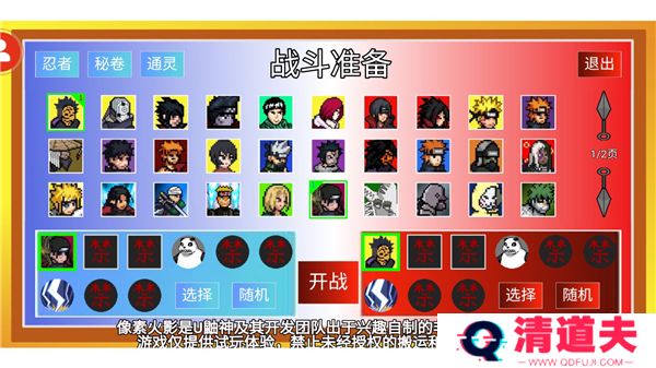 1. 角色选择:初次进入游戏时,玩家可以选择自己喜欢的火影角色进行格斗对决。每个角色都有独特的技能和战斗风格,玩家可以根据自己的喜好和操作习惯进行选择。