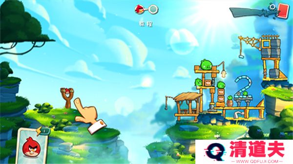 2. 玩家需要选择一只小鸟,通过滑动屏幕调整发射角度和力度,然后松开手指发射小鸟。