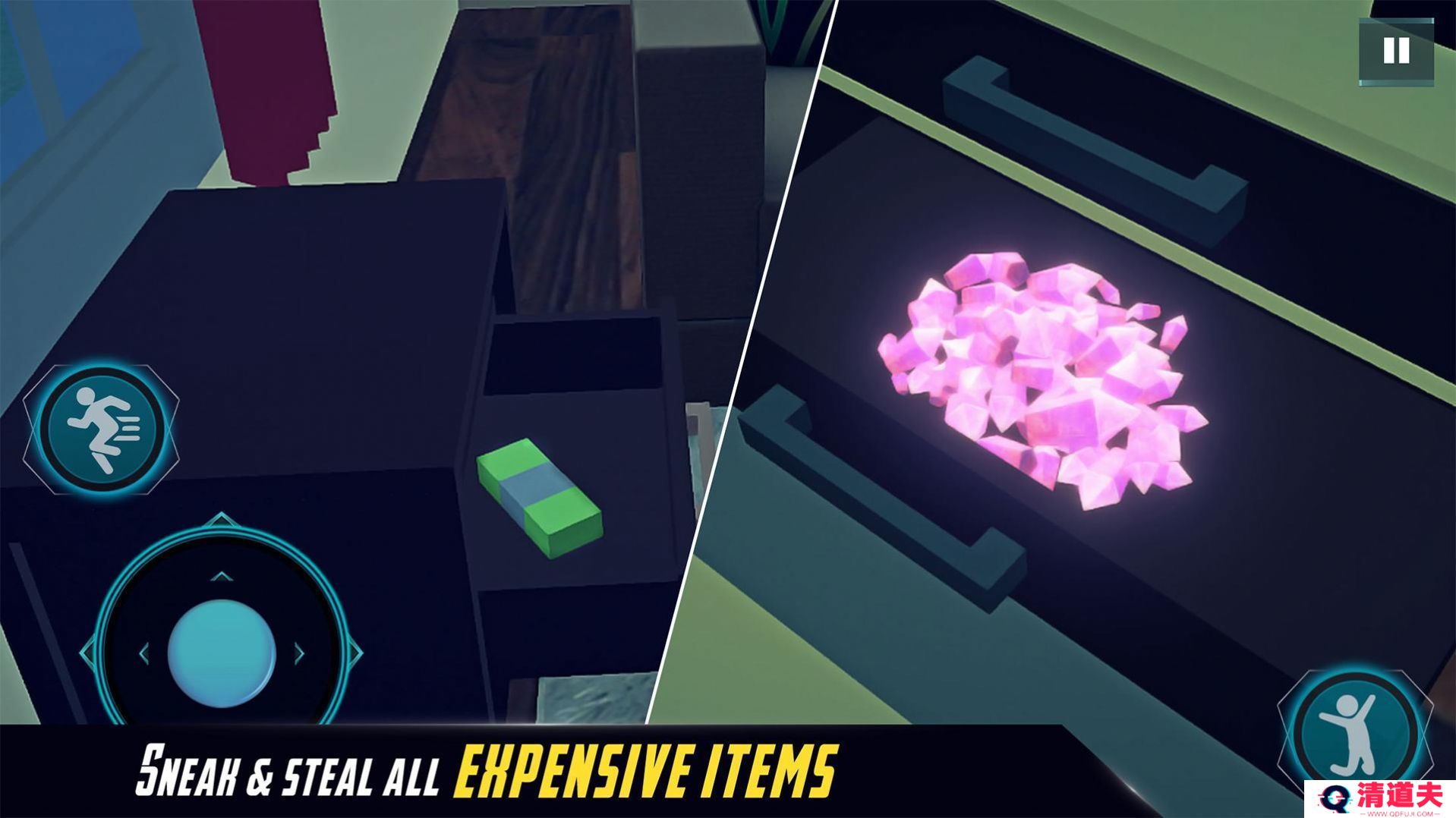 3. 潜入与盗窃:利用潜行技巧避开巡逻的保安和监控摄像头,找到贵重物品的位置,并快速而安静地收集它们。