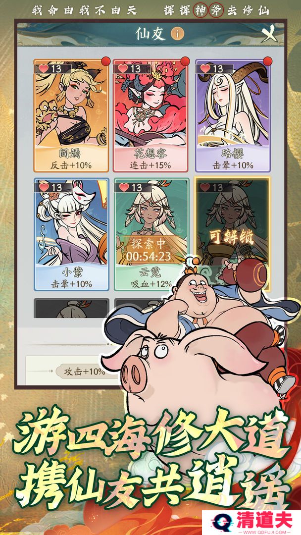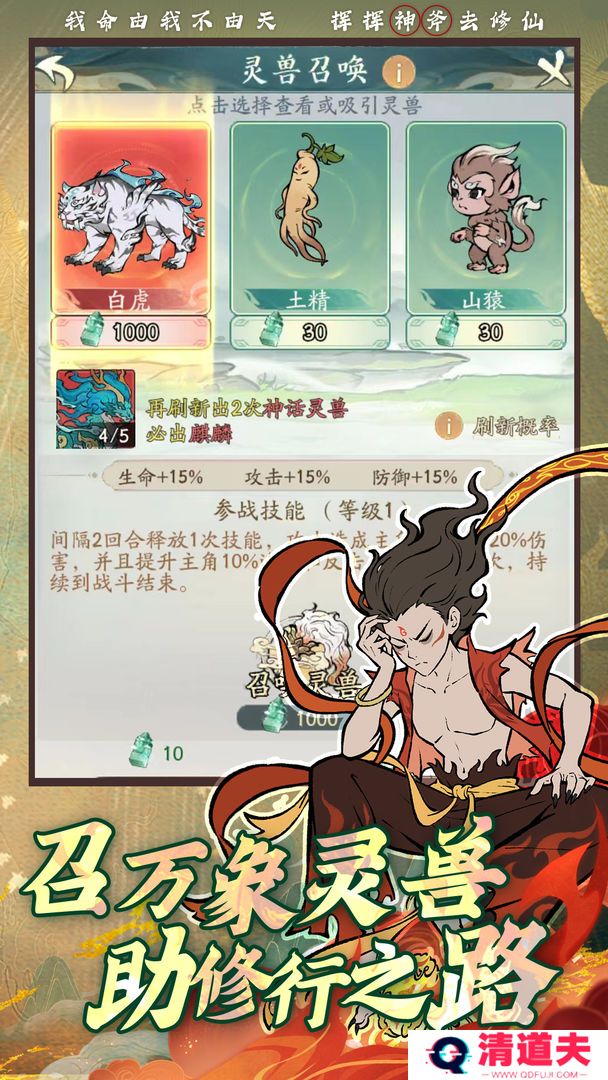 1. 修仙进阶系统:玩家在游戏中可以通过修炼、升级、携带卡牌等方式提升修仙境界,逐步开启更高层次的修仙境界,解锁更多神通和技能。