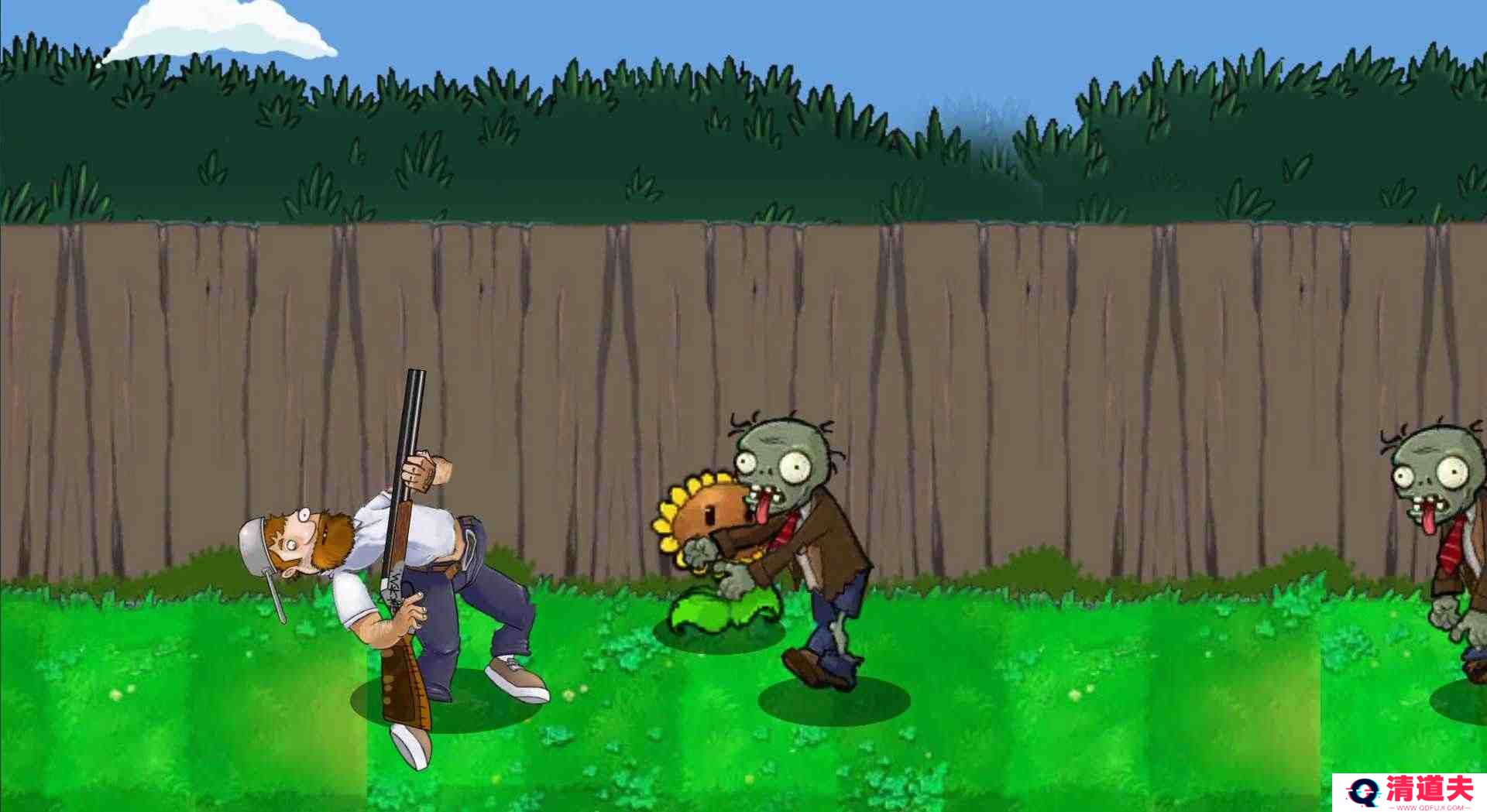 4. 射击战斗:除了布局植物外,玩家还需要亲自操控戴夫进行射击,击败靠近的僵尸。