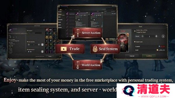 2. 自由交易系统:游戏中的交易所系统允许玩家自由交易装备和物品。玩家可以将自己在副本、boss战等关卡中获取的装备上架交易行,通过自己以及系统鉴定的价格进行标注,售卖给其他玩家,从中获取收益。