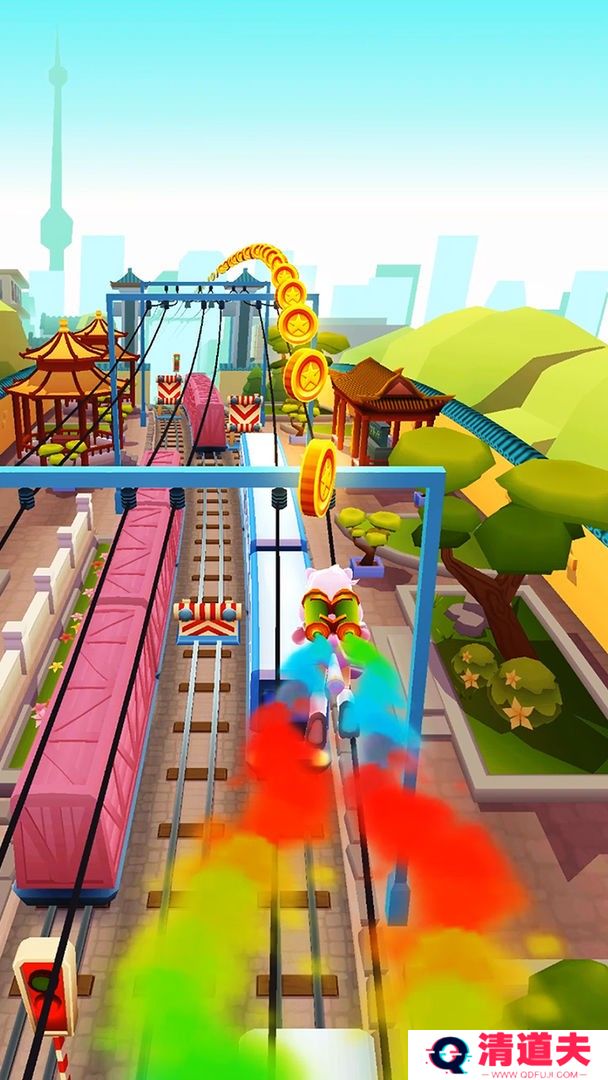 2. 真实的城市场景:游戏以武汉的真实城市景观为背景,包括黄鹤楼、长江大桥等著名地标,让玩家在跑酷的同时领略城市的魅力。