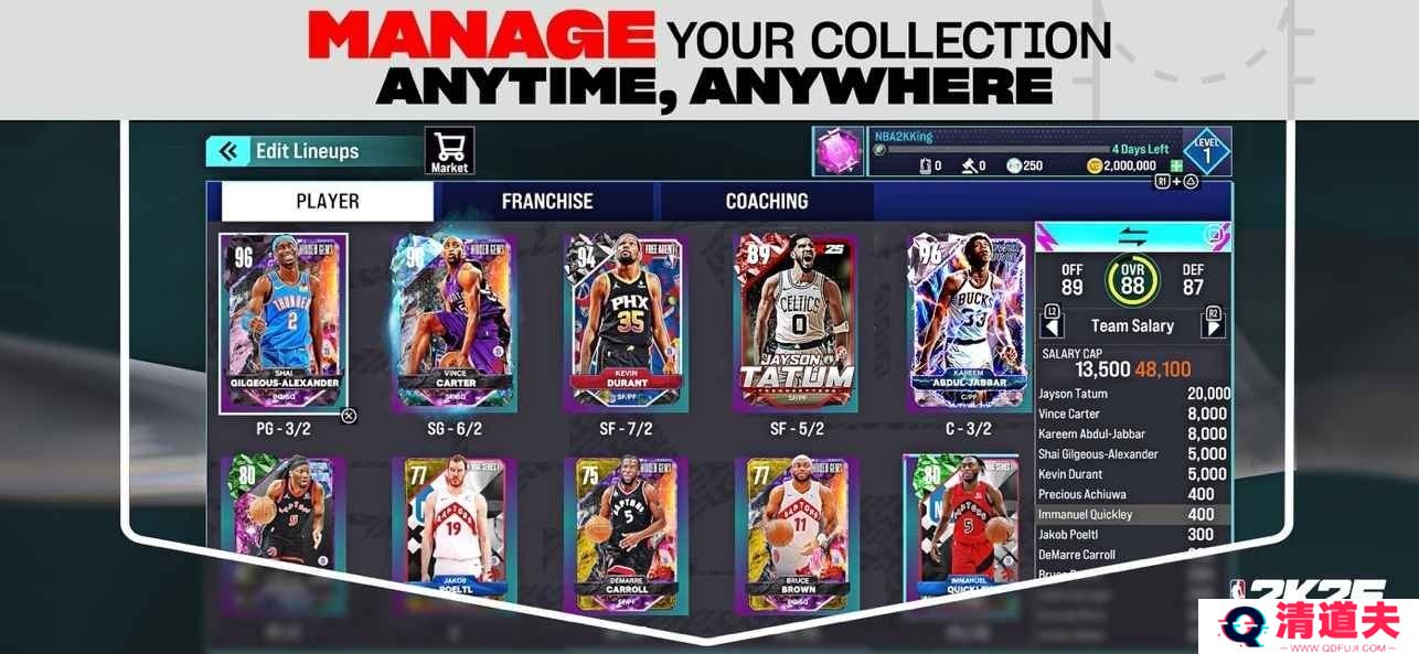1. 多样球员选择:玩家可以选择自己喜欢的NBA球星或创建自定义球员,参与各种赛事和挑战。