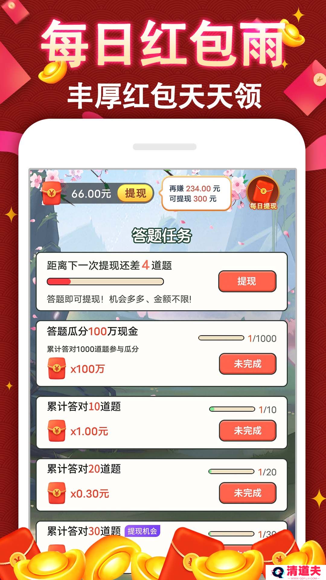 赚钱答题王是一款集知识问答与赚钱乐趣于一体的益智游戏。玩家在游戏中通过回答各种问题来赚取虚拟货币,甚至有机会将虚拟收益兑换为真实奖励。游戏覆盖了广泛的知识领域,从日常常识到专业学问,旨在考验并拓展玩家的知识面。