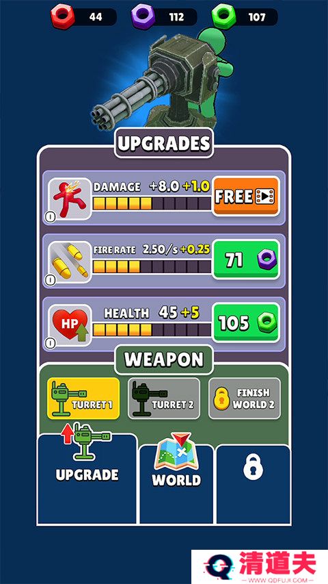 3. 升级系统:玩家可以通过游戏中的升级系统来提升自己的武器威力和防御能力,包括炮塔的攻击力、攻击范围等。