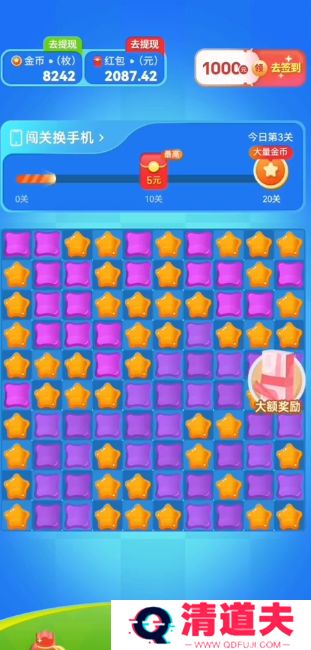 5. 领取奖励:完成关卡后,根据得分情况领取相应的游戏金币和红包奖励。