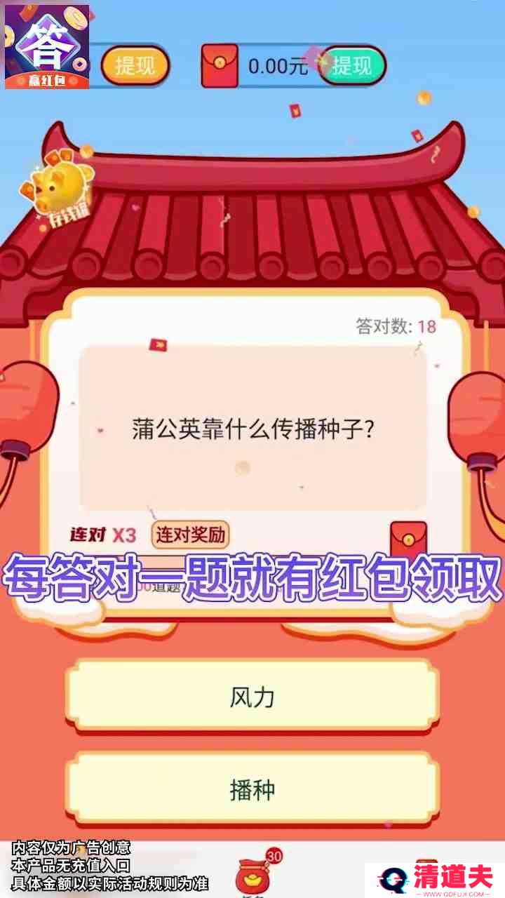 疯狂答题王红包版是一款集知识问答与趣味挑战于一体的益智游戏。玩家在游戏中通过回答各种问题来赚取积分和红包奖励,题目覆盖广泛,包括历史、文化、科学、娱乐等多个领域,旨在考验玩家的知识储备和反应速度。游戏设计精美,界面友好,让玩家在享受答题乐趣的同时,还能获得实实在在的红包奖励。