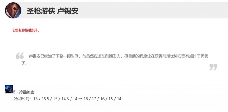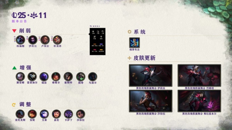 注:国服的公告基于国服更新的实际版本数值,Riot游戏设计团队如在版本内对平衡性进行调整,国服运营团队将根据更新筹备进度发布版本内更新公告。后续可能基于实际运行效果进行优化,且不同机器配置下效果可能不同。