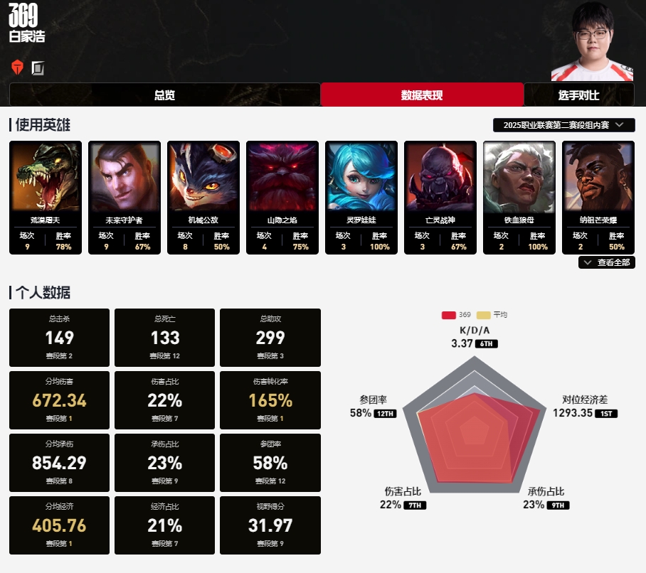 总击杀数149个(上单第二)