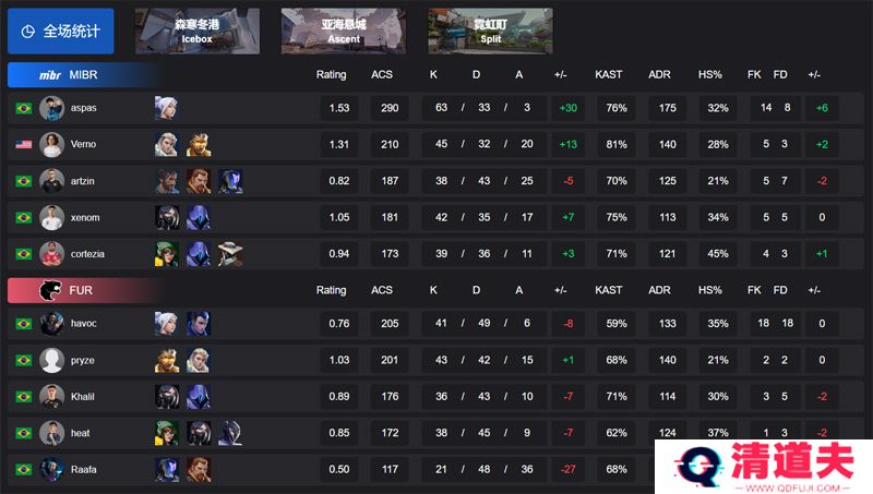 图二FUR选择亚海悬城,FUR上半场进攻流畅拿下10分,下半场MIBR苦苦追分却无力回天,FUR以13比9强势扳回一城。
