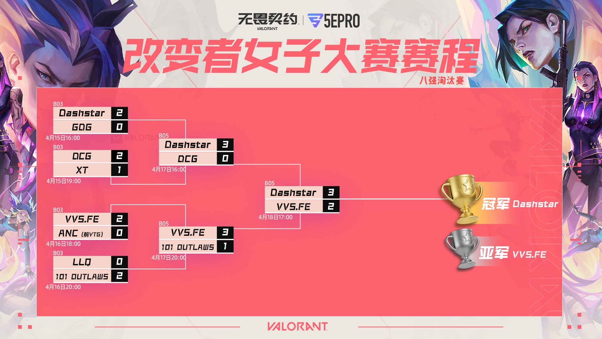 4月18日,Dashstar战队与VVS.FE战队鏖战五局,最终Dashstar战队3-2战胜对手VVS.FE战队夺得2025无畏契约5EPRO女子大赛冠军!